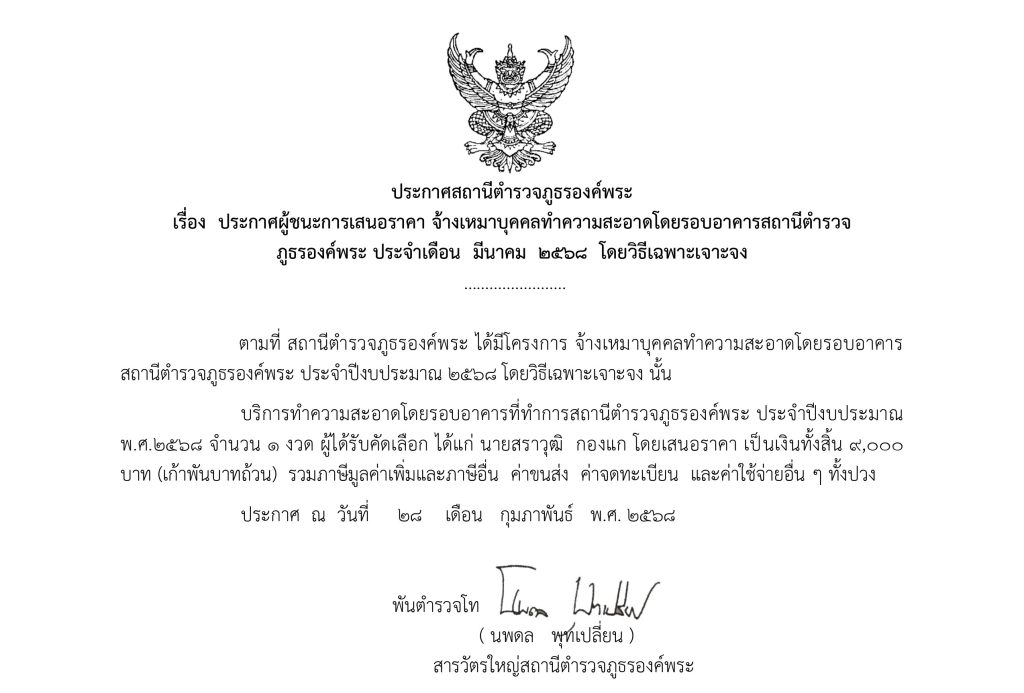 ประกาศจัดซื้อจัดจ้าง เดือน มีนาคม 2568 27 มีนาคม 2568 โดย อัครพล องค์พระ อัครพล องค์พระ / ข่าวจัดซื้อจัดจ้าง ประกาศสถานีตำรวจภูธรองค์พระเรื่อง ประกาศผู้ชนะการเสนอราคาจ้างเหมาทำความสะอาดอาคารที่ทำการสถานีตำรวจภูธรองค์พระ โดยวิธีเฉพาะเจาะจง เดือน มีนาคม 2568 ในรูปแบบ Pdf ประกาศสถานีตำรวจภูธรองค์พระเรื่อง ประกาศผู้ชนะการเสนอราคาจัดซื้อน้ำมันเชื้อเพลิง เพื่อใช้ในภารกิจป้องกันปราบปรามอาชญากรรมโดยวิธีเฉพาะเจาะจง มีนาคม 2568 รูปแบบ PDF