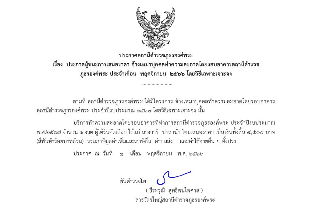ประกาศจัดซื้อจัดจ้าง เดือน พฤศจิกายน 66 27 พฤศจิกายน 2566 โดย อัครพล องค์พระ อัครพล องค์พระ / ข่าวจัดซื้อจัดจ้าง ประกาศสถานีตำรวจภูธรองค์พระเรื่อง ประกาศผู้ชนะการเสนอราคาจ้างเหมาทำความสะอาดอาคารที่ทำการสถานีตำรวจภูธรองค์พระ โดยวิธีเฉพาะเจาะจง เดือน พฤศจิกายน 2567 ในรูปแบบ Pdf ประกาศสถานีตำรวจภูธรองค์พระเรื่อง ประกาศผู้ชนะการเสนอราคาจัดซื้อน้ำมันเชื้อเพลิง เพื่อใช้ในภารกิจป้องกันปราบปรามอาชญากรรมโดยวิธีเฉพาะเจาะจง พฤศจิกายน 2567 รูปแบบ PDF