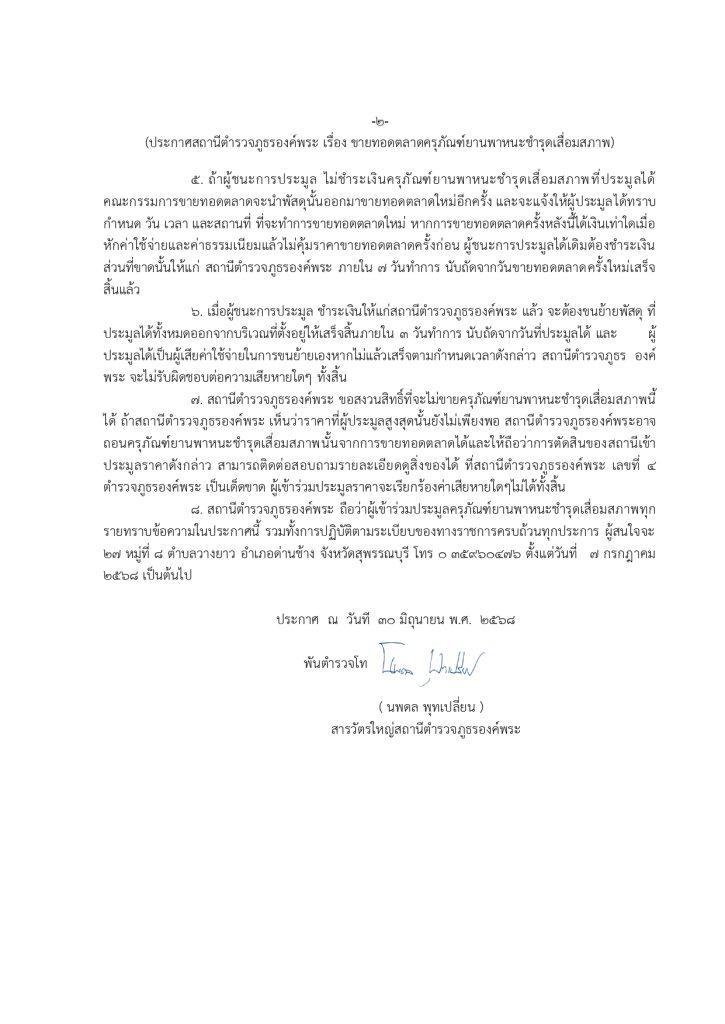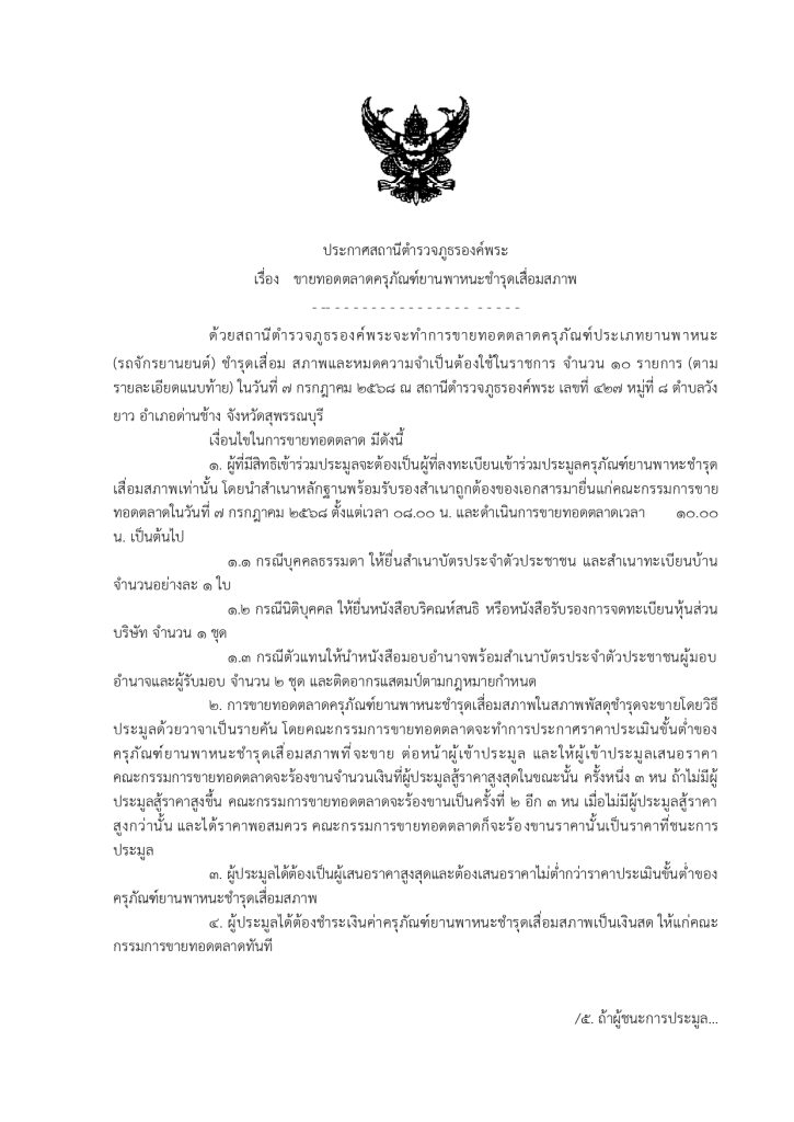 สถานีตำรวจภูธรองค์พระ ขอแจ้งประชาสัมพันธ์ ผู้สนใจเข้าร่วมประมูลการขายทอดตลาดครุภัณฑ์ประเภทยานพาหนะ 5 กรกฎาคม 2568 โดย อัครพล องค์พระ อัครพล องค์พระ / ข่าวประชาสัมพันธ์