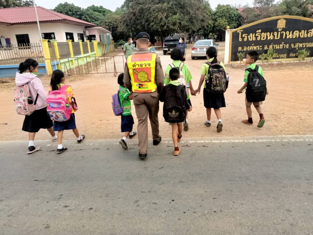 อำนวยความสะดวกการจราจร หน้าโรงเรียนบ้านดงเสลา