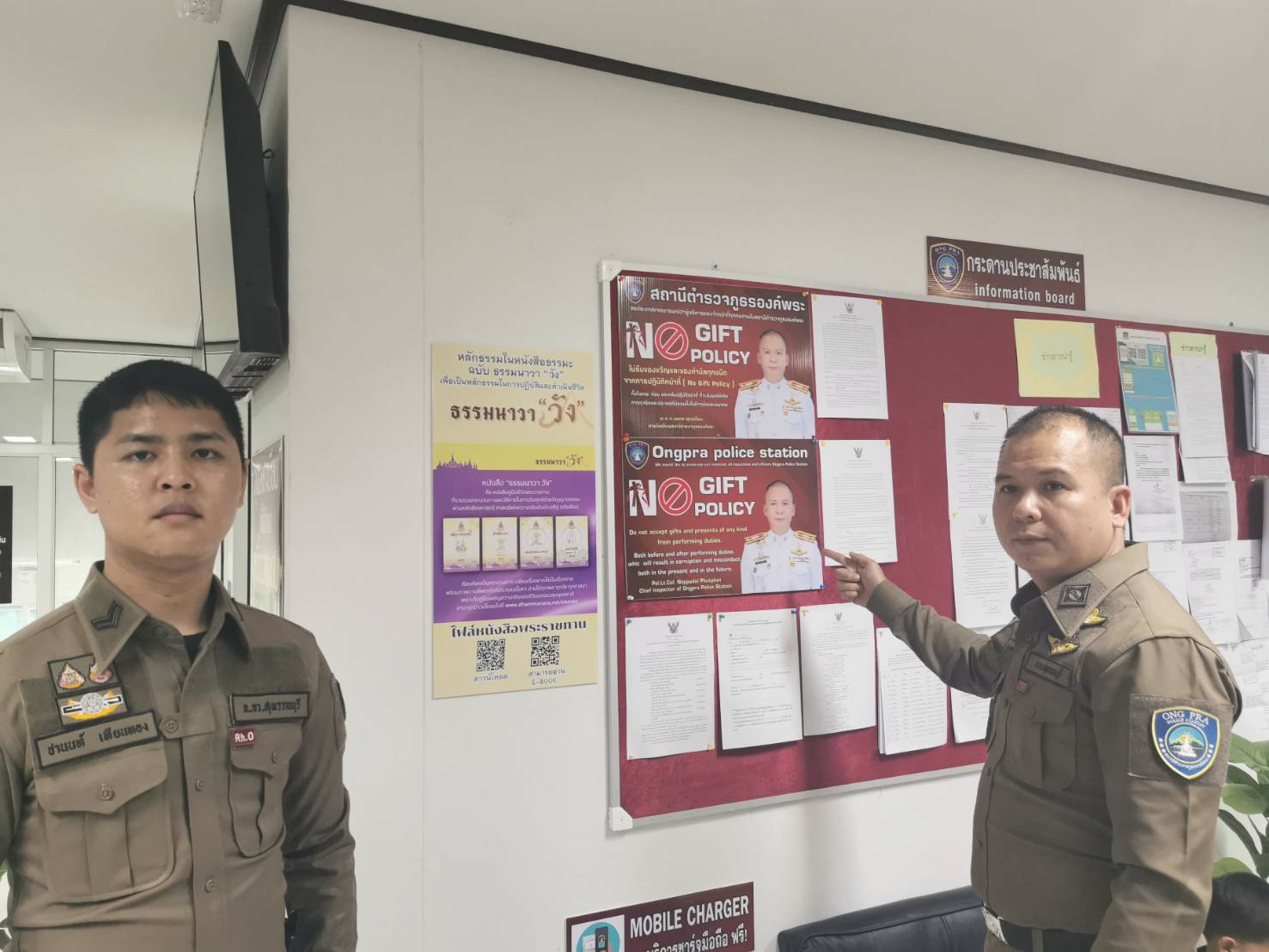พ.ต.ท.นพดล พุทเปลี่ยน สวญ.สภ.องค์พระ ติดป้ายเพื่อประกาศเจตนารมณ์ในการป้องกันการรับสินบนและต่อต้านการทุจริต