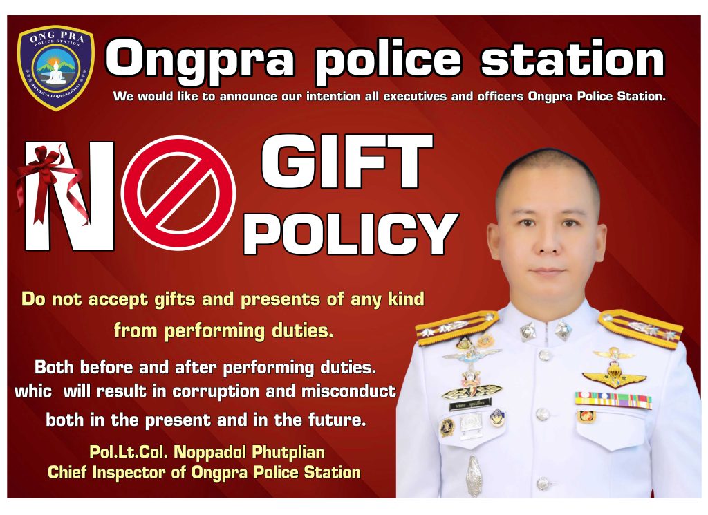 - ประกาศสำนักงานยุทธศาสตร์ตำรวจเรื่องเจตนารมณ์ที่จะไม่รับของขวัญหรือของกำนัลทุกชนิดจากการปฏิบัติหน้าที่