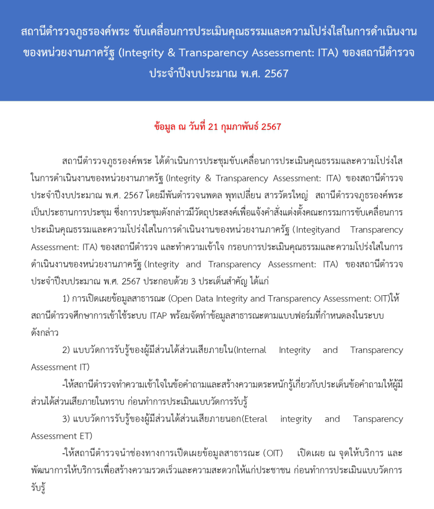 การประชาสัมพันธ์ขอมูลผลการดำเนินงานของหน่วยเรื่องการประเมิน ITA