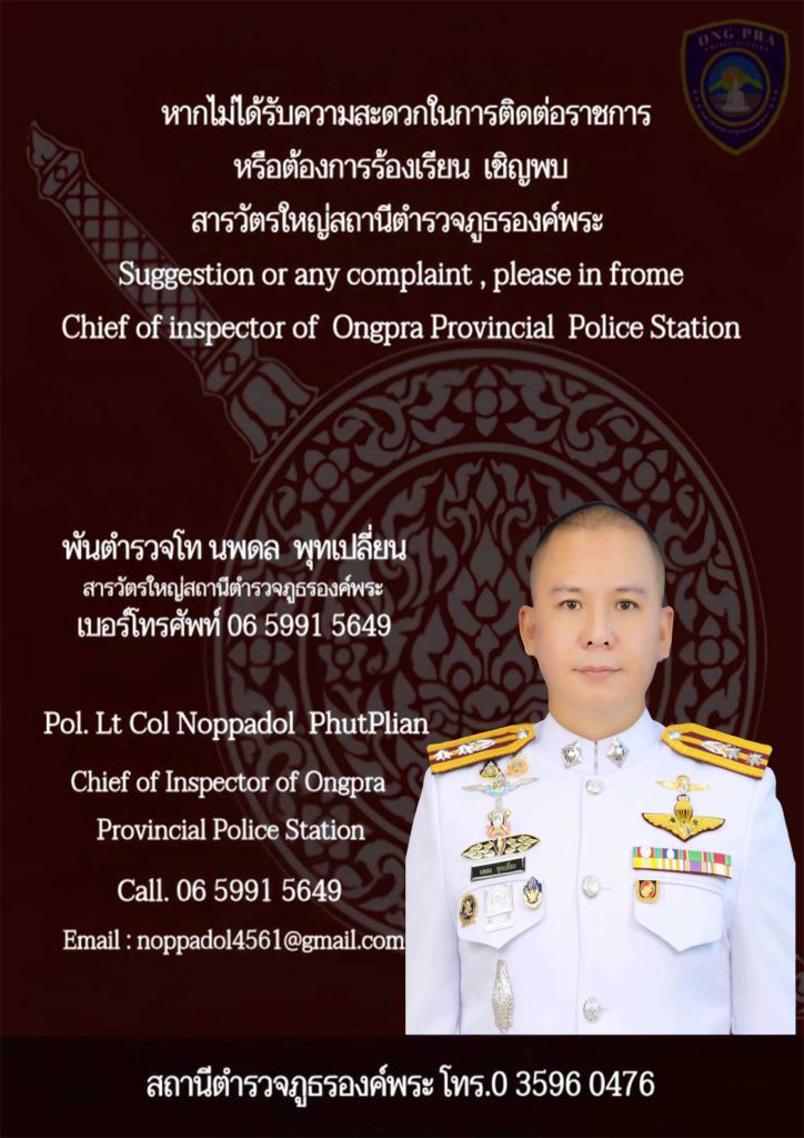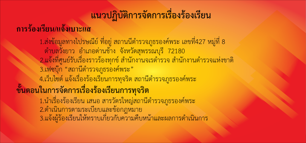 ช่องทางแจ้งเรื่องร้องเรียนการทุจริตของสถานีตำรวจภูธรองค์พระ